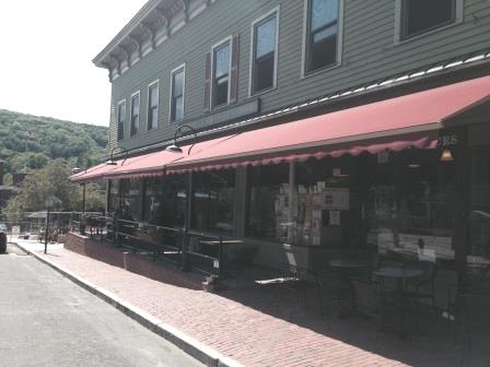This wood frame commercial building has a projecting cornice, eaves brackets and decorative siding typical of the late 19th century Italianate style. In the 1890s it housed three businesses: a meat market, shoe store and purveyor of household goods.