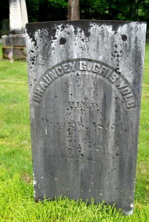 Years after his death, Griswold’s brother wrote to his widow: If ever a man was fitted for a blessed immortality by a life of earnest, active, devoted piety, he was one.” Chauncey Griswold is buried in the Canton CenterCemetery on Cherry Brook Road.